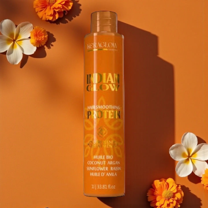 Découvrez le lissage indien Keraglow : un lissage de type brésilien sans formol, enrichi en huile d’amla et en huiles végétales sélectionnées (coco, argan, tournesol, extraits de tanin). Il offre une hydratation optimale, une brillance miroir et une détente de la fibre jusqu’à 100 % selon la nature des cheveux.