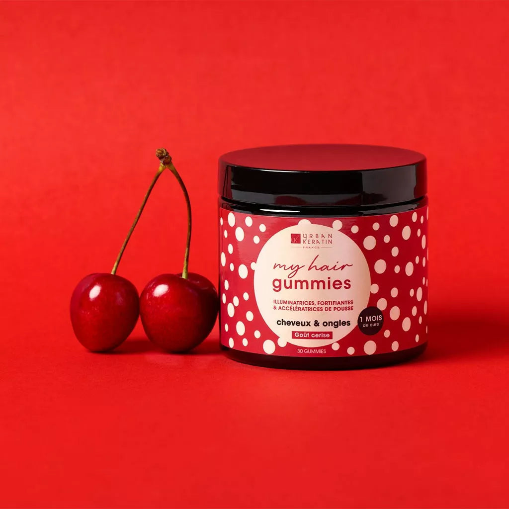 Découvrez MY HAIR GUMMIES de Urban Keratin, le secret pour des cheveux et des ongles visiblement plus beaux et plus forts. Ce complément alimentaire révolutionnaire, sous forme de délicieuses gommes à la saveur cerise, est conçu pour nourrir vos cheveux de l'intérieur et révéler leur éclat naturel.