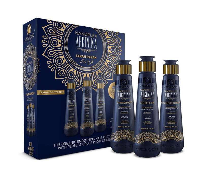 La collection Nanoplex Arginina ™ contient tout ce dont vous avez besoin pour effectuer un traitement de lissage brésilien de classe mondiale , à base de L-Arginine , de composants organiques et de 0% de formaldéhyde .